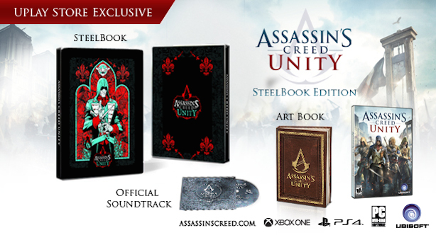 کسانی که عاشق نسخه های فیزیکی و مخصوص بازیها و متعلقات و وسایل و لوازم فانتزی همراه آنها هستند باید حتما سری به فروشگاه uplay بزنند و نگاهی به نسخه Steelbook Edition عنوان Assassin's Creed Unity بیندازند. یک نسخه 64.99 دلاری که برای PS4،Xbox One و PC عرضه خواهد شد.این نسخه تنها در فروشگاه uplay عرضه می شود و در انحصار این فروشگاه است.
